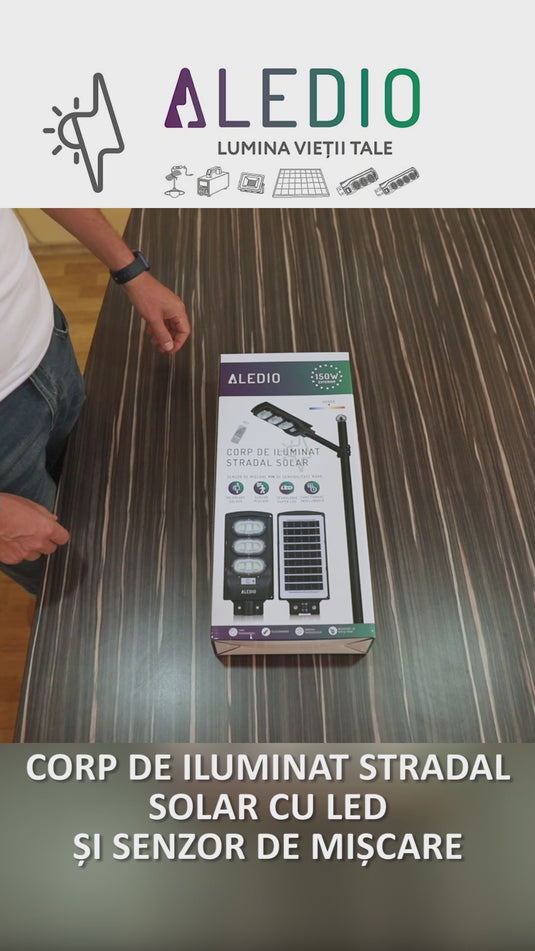| Corp de iluminat stradal LED solar cu senzor de miscare 150W 6Ah 4000K IP65 Aledio |