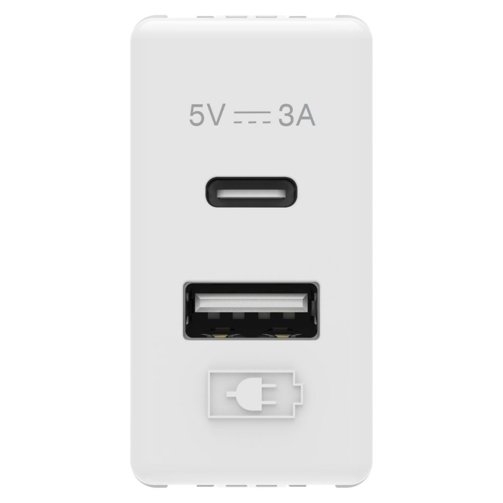 Priza USB, tip A+C, 1 modul, 5V, 3A, alb, System GW20363