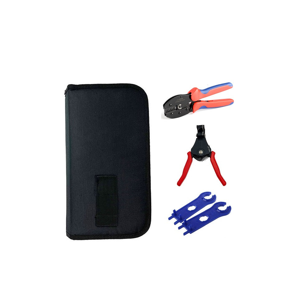 Continut: - Cleste sertizat pini MC4 2.5/4/6mm² LY-2546B - 1 buc - Cheie MC4 LS-207 - 2 buc - Cleste de taiat si dezizolat MC4 LS-700E - 1 buc - Trusă cu fermoar - 1 buc |
