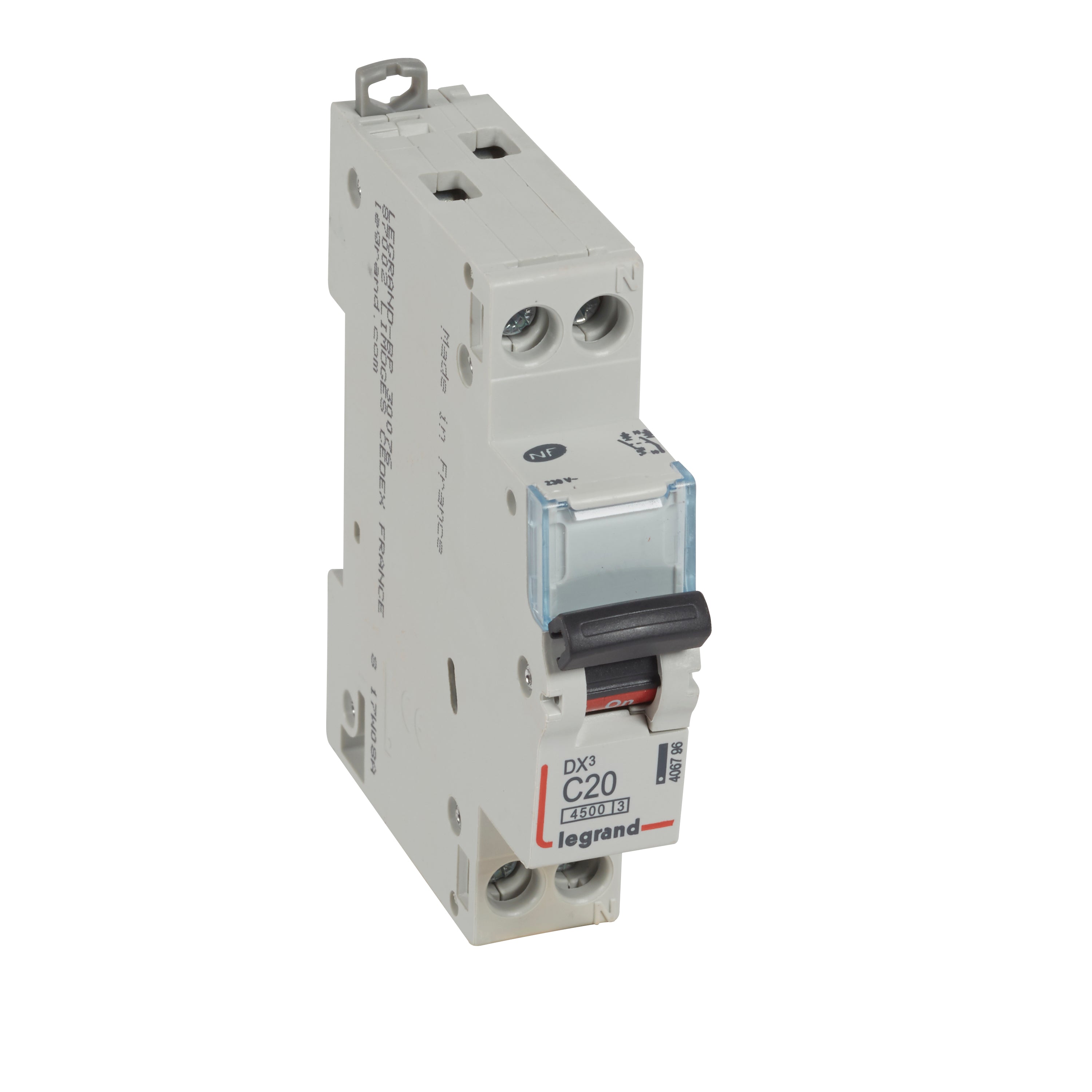 Disjunctor DX³, fază+nul, 20A, curba C, 4.5kA, 1 modul, Legrand 406796